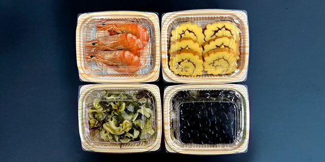 容器ごとフィルムで覆うことができ、おせち・オードブルといった商品を保護することが可能です。