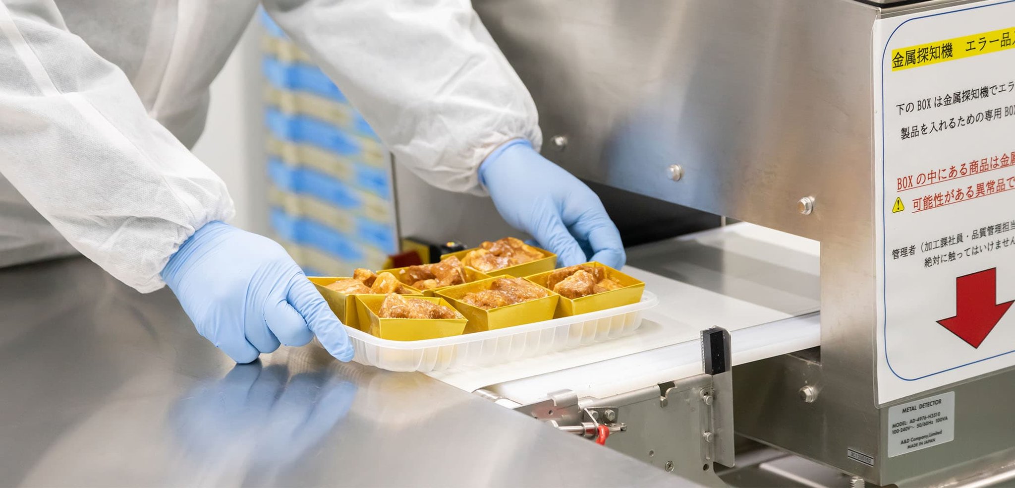 食品の加工場を2つ持ち合わせており、加えて三温度帯(常温・冷蔵・冷凍)の倉庫も備えています。